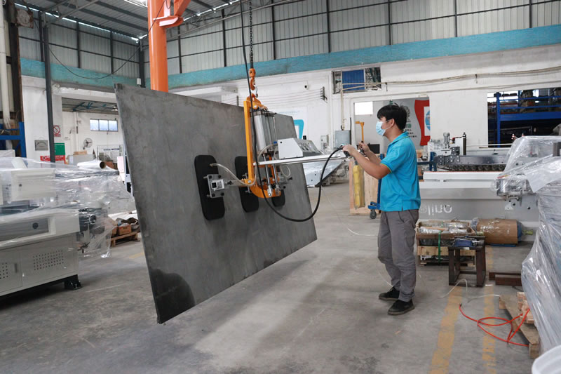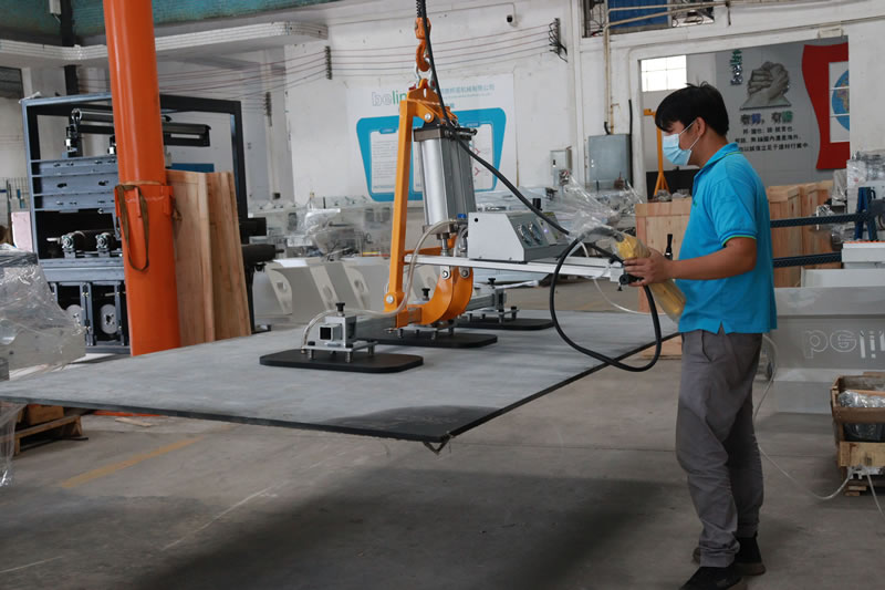 This vacuum lifter is designed to lift smooth or rough marble and granite slabs. Pneumatic vertical-horizontal tilting 0 to 90°.