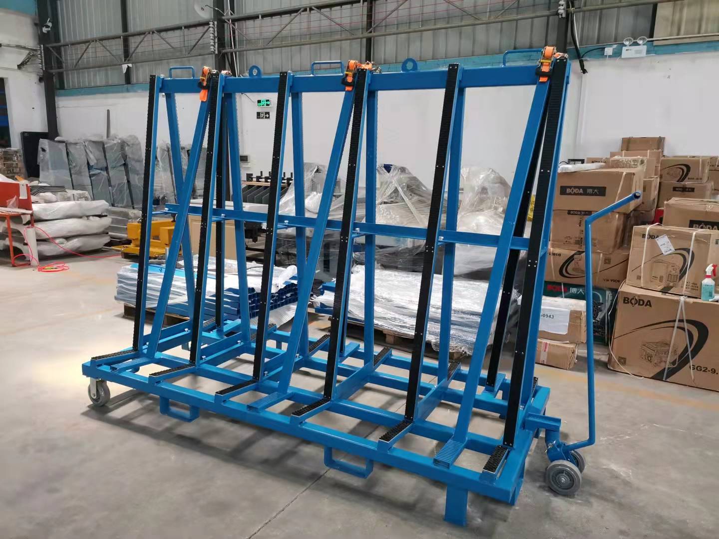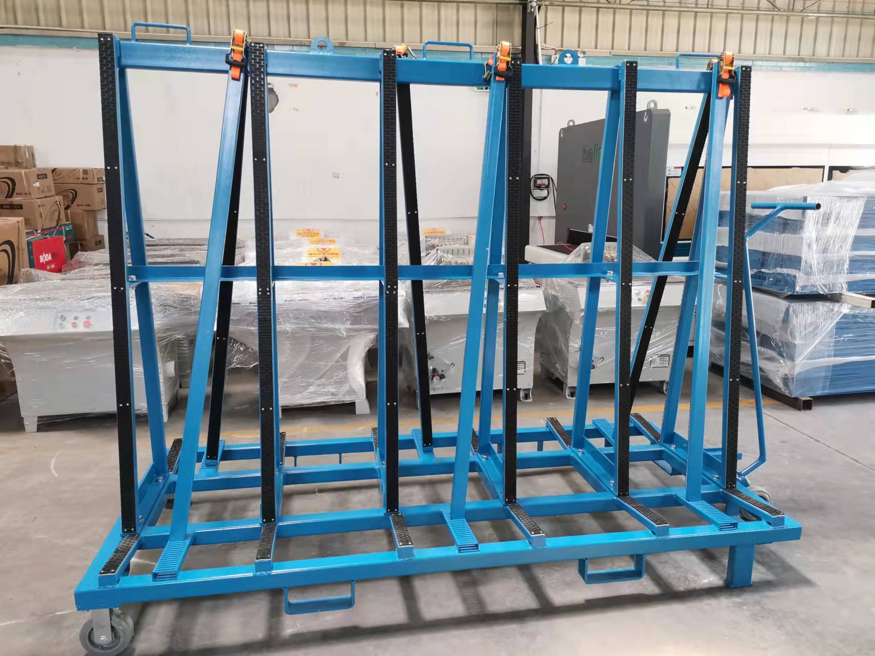 This design is used for the transportation and storage of the plate inside and outside the factory area. The surface of the bracket is covered with a rubber layer to protect the plate scratch.